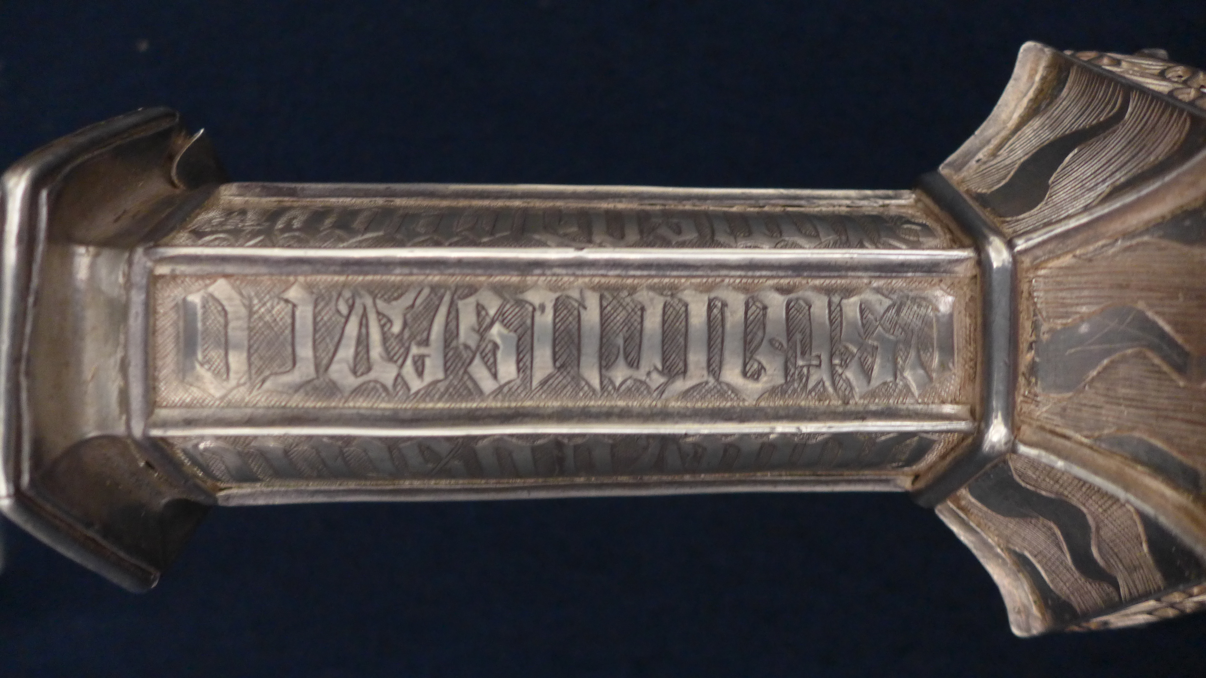 Inscripción en cañón: ESTA CRUS FYÇO / ALONSO DE PORTY- / LLO PLATER[O] D'ASTOR[GA] / AVE MARYA G- / RACYA PLENA / DOMYNOS (sic) TE CO[m] (sic).