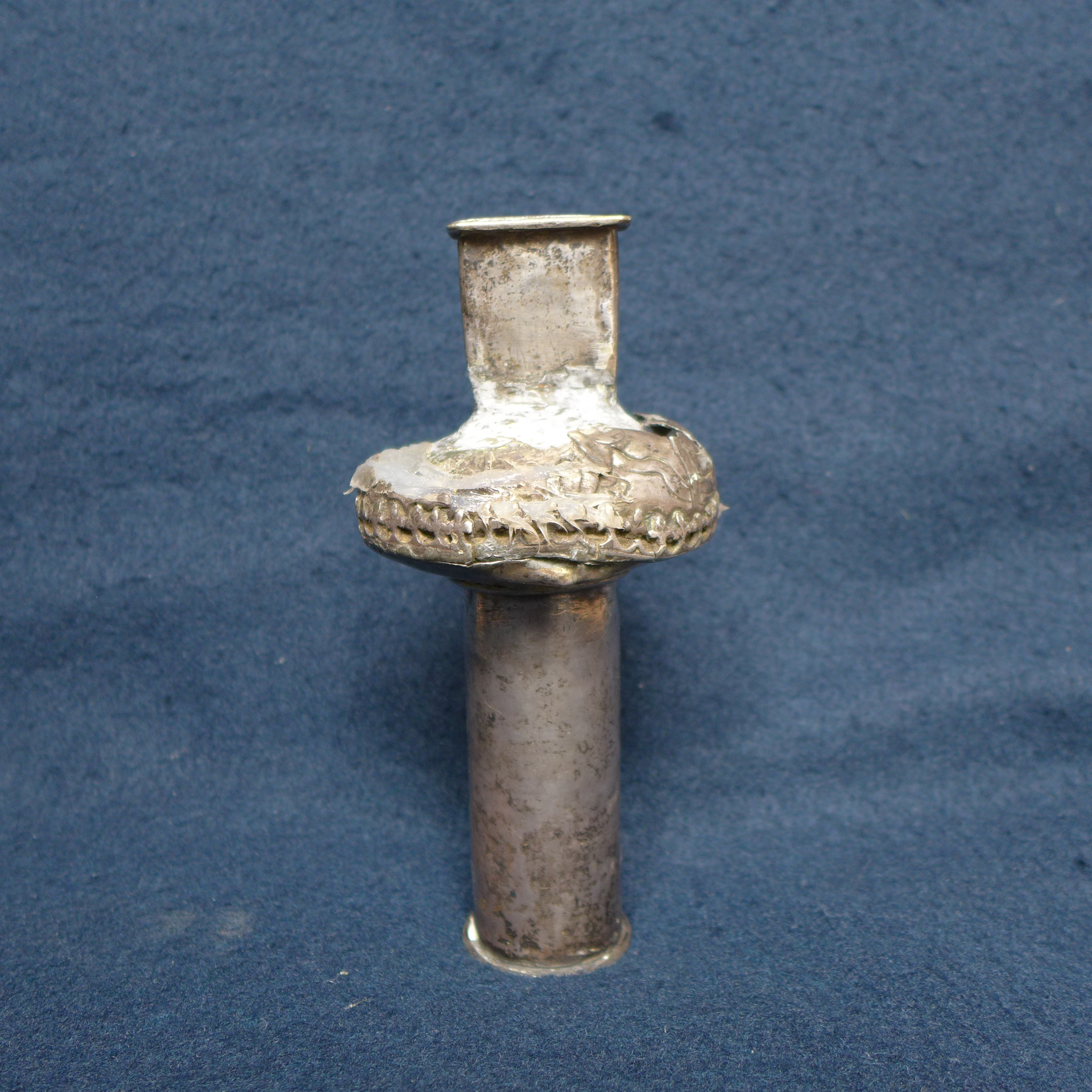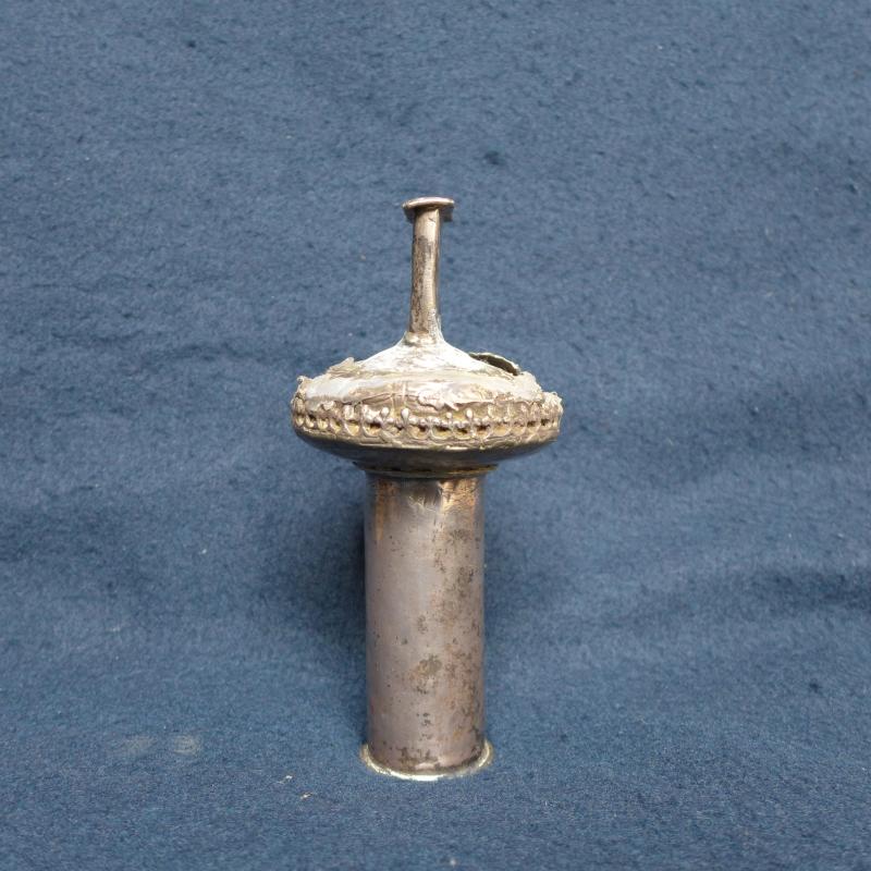 Perteneciente a la cruz procesional de Lombillo, esta pequeña macolla, aunque muy maltratada, es de gran interés, pues es la única de esta tipología que se conservan dentro de las cruces de plancha de planta del Bierzo. Se compone de cañón cilíndrico liso, nudo achatado con cenefa de hojas treboladas a modo de crestería y parte superior plana para enmangar la cruz.