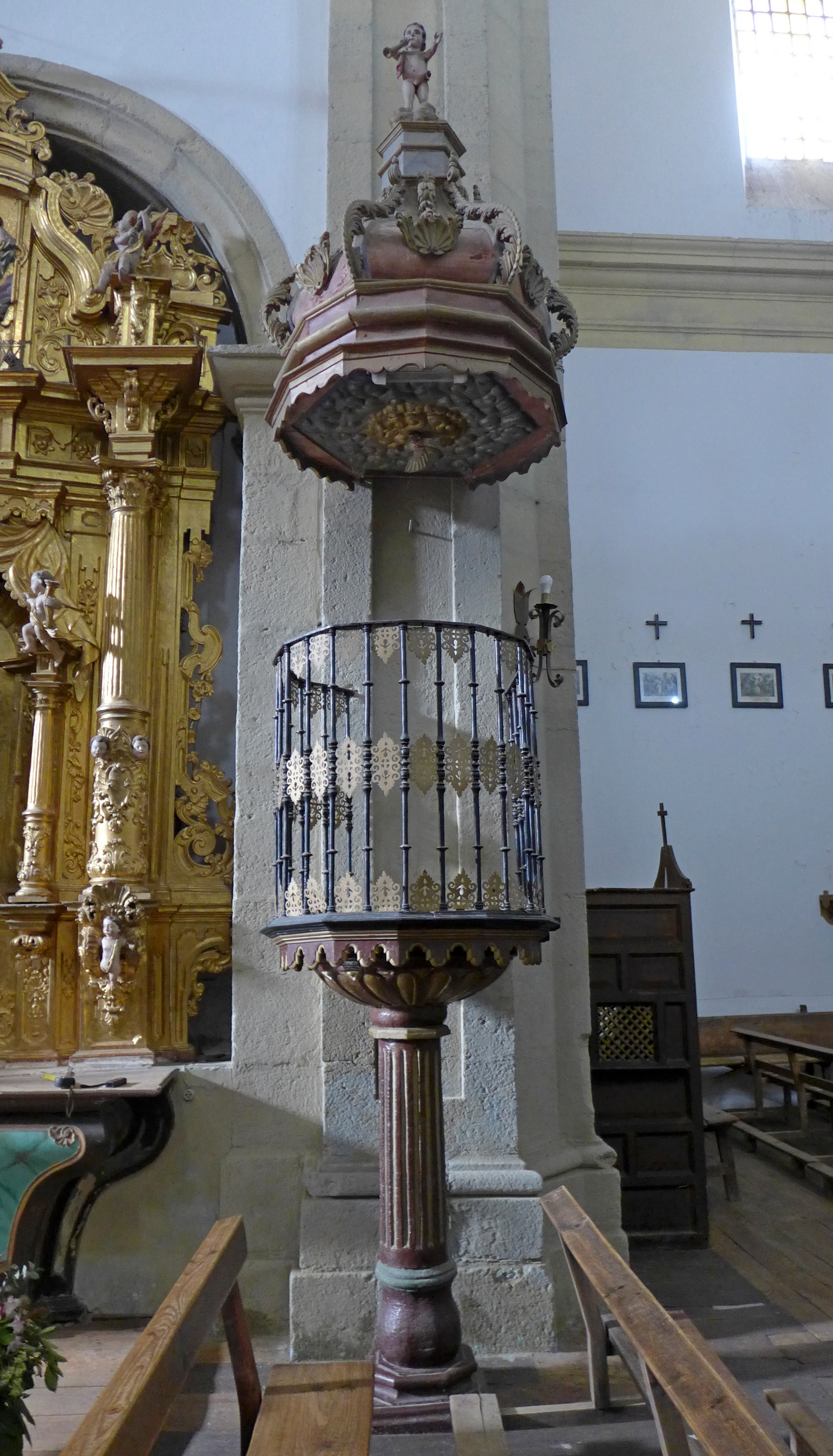 El púlpito de la iglesia de Santa Columba se conserva completo y en muy buen estado, a excepción de sus escaleras de acceso, que se perdieron con la propia pérdida de uso del mueble.